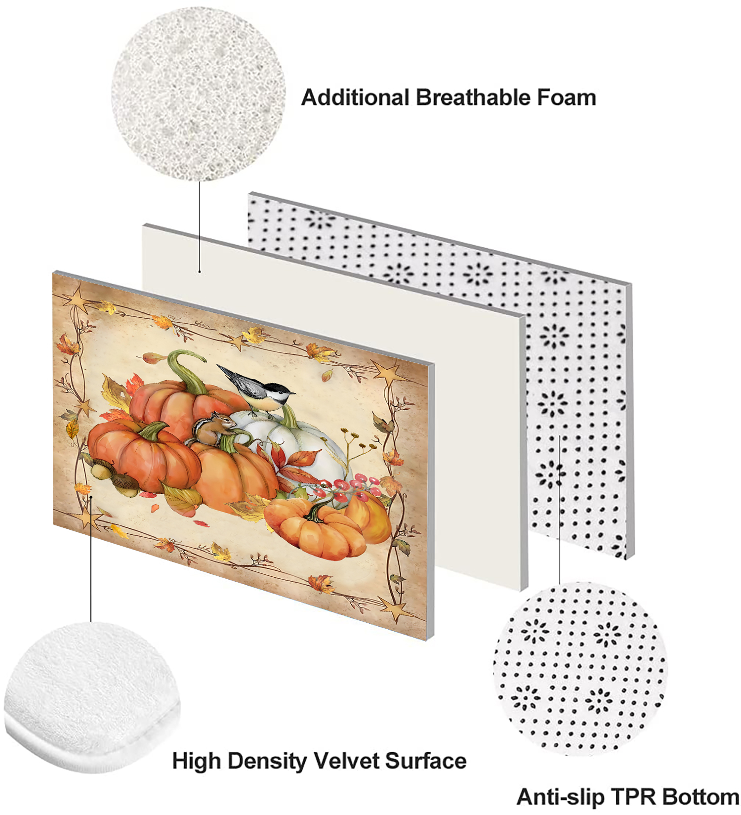 Thanksgiving shower curtain set,decorate the festive atmosphere and make you feel good and relaxed. The four-piece set can dress up your bathroom into a whole style, make the bathroom style more unified and harmonious.